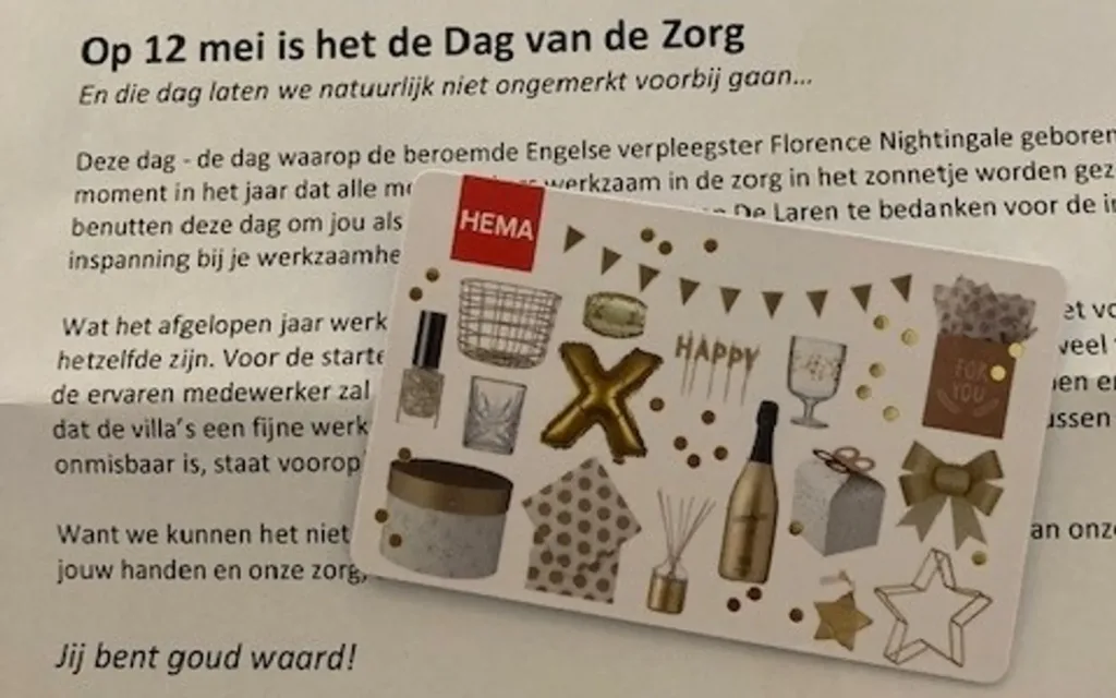 Al onze medewerkers ontvingen een HEMA Cadeaubon