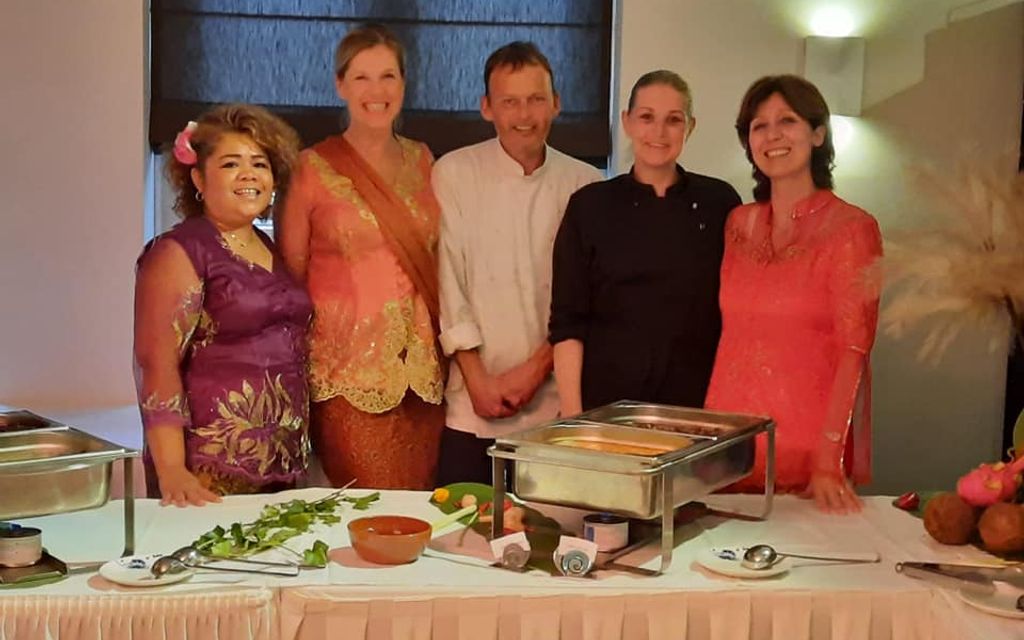 De afsluiting van de dag vormde een - volledig in eigen huis bereidde - Indische rijsttafel. Veel lof voor onze koks Jürgen en Ramona die dat tot in de puntjes verzorgd hebben. De tafeldecoratie lag als vanouds in de bekwame handen van het horecateam. Een intermezzo van twee danseressen met een sierlijke Indonesische dans maakte het geheel compleet.