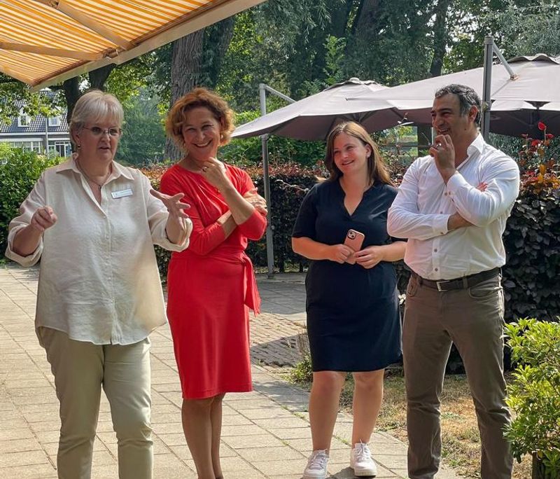 Tijdens werkbezoek van tweede kamerlid en burgerraadslid VVD in de tuin van Villa MaJa.