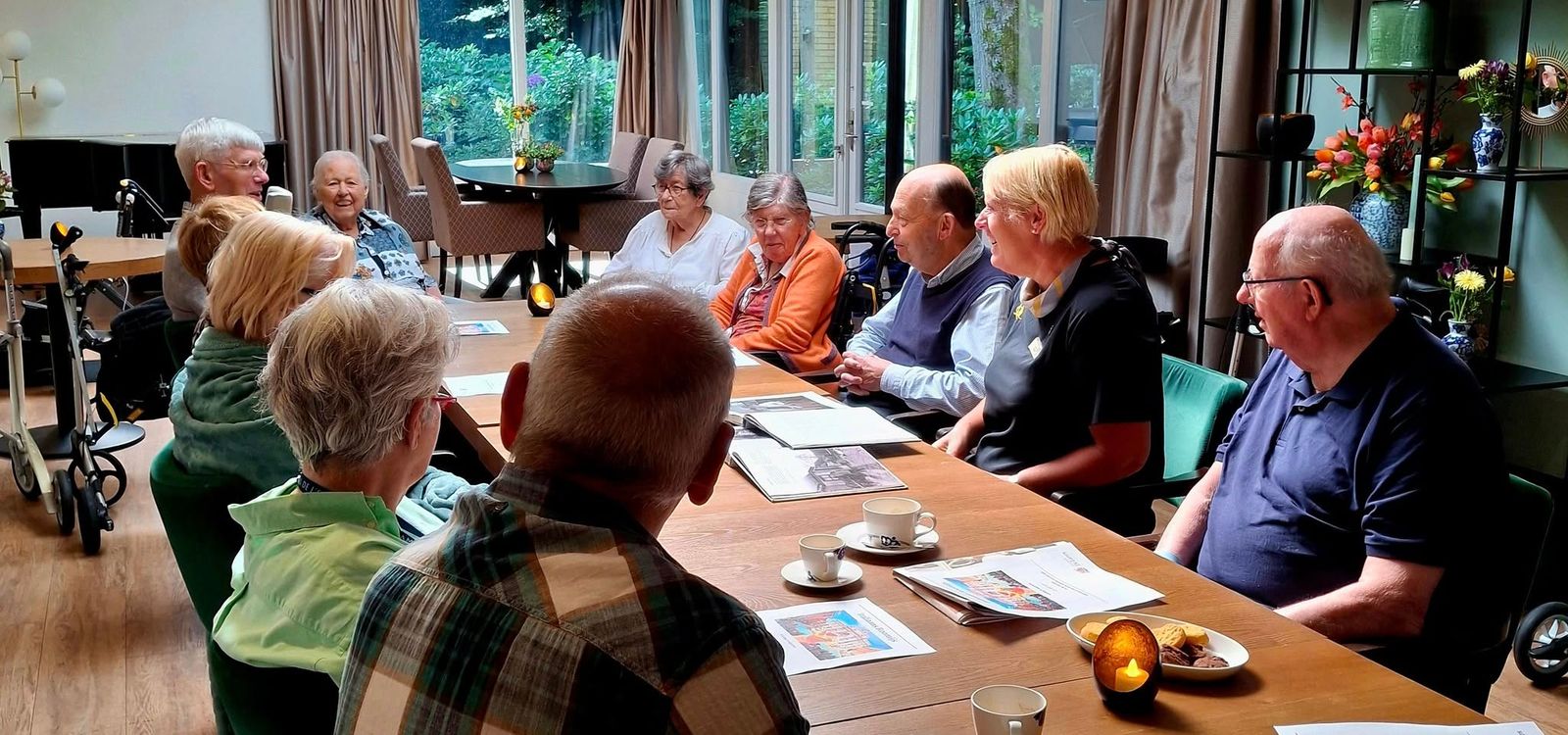 Gastvrouw Inger leest samen met bewoners boeken vol oude foto’s en verhalen, beschikbaar gesteld door de Bibliotheek Zeist. Deze platen en teksten roepen herinneringen op en brengen gesprekken op gang. Bewoners vertellen hun eigen verhaal, luisteren naar elkaar en ontdekken herkenning in de ervaringen van anderen.