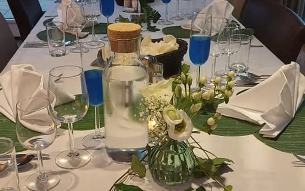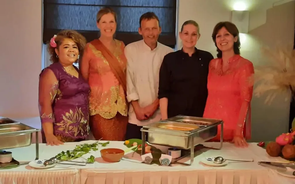 De afsluiting van de dag vormde een – volledig in eigen huis bereidde – Indische rijsttafel. Veel lof voor onze koks Jürgen en Ramona die dat tot in de puntjes verzorgd hebben. De tafeldecoratie lag als vanouds in de bekwame handen van het horecateam. Een intermezzo van twee danseressen met een sierlijke Indonesische dans maakte het geheel compleet.