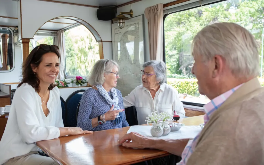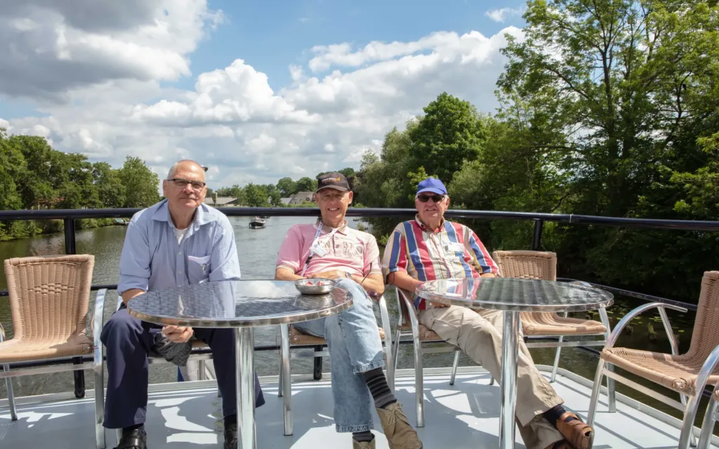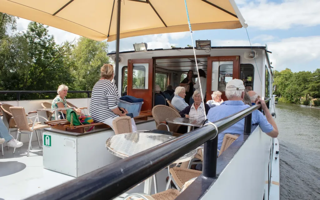Afgelopen dinsdag hebben onze collega’s en alle bewoners van Zorgvilla Sluysoort, Zorgvilla Hoefstaete en Zorgvilla Marijke Elisabeth genoten van een boottocht over de Vecht. De tocht – die maar liefst 2 uur duurde – ging richting Breukelen, Loenen aan de Vecht. Onderweg werden ze getrakteerd op koffie, thee en een heerlijk stukje appeltaart. En natuurlijk het zonnetje, dat volop scheen. Iedereen heeft volop genoten. Zo belangrijk om soms even de deur uit te zijn en te genieten van de mooie Nederlandse natuur. Het was oprecht een prachtige dag!