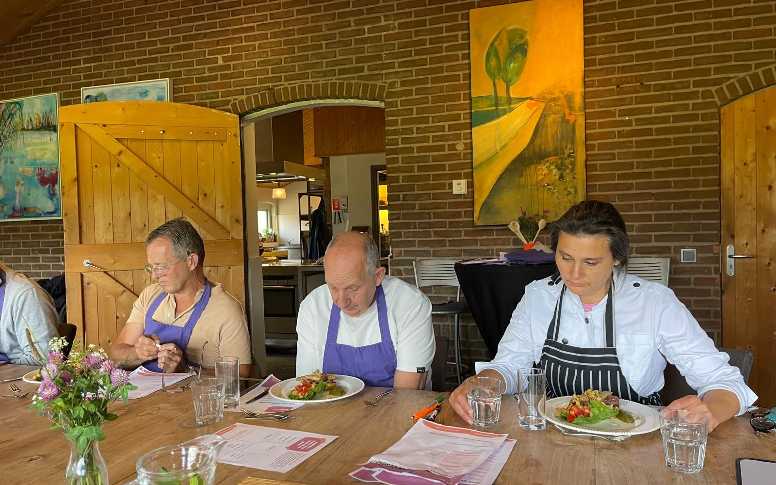 Na het koken volgde de feestelijke lunch, waarin de gerechten aan elkaar gepresenteerd én natuurlijk geproefd werden. Er werd met aandacht gegeten en gestemd. Want iedere kok weet: proeven is pas écht leuk als je ook mag beoordelen.