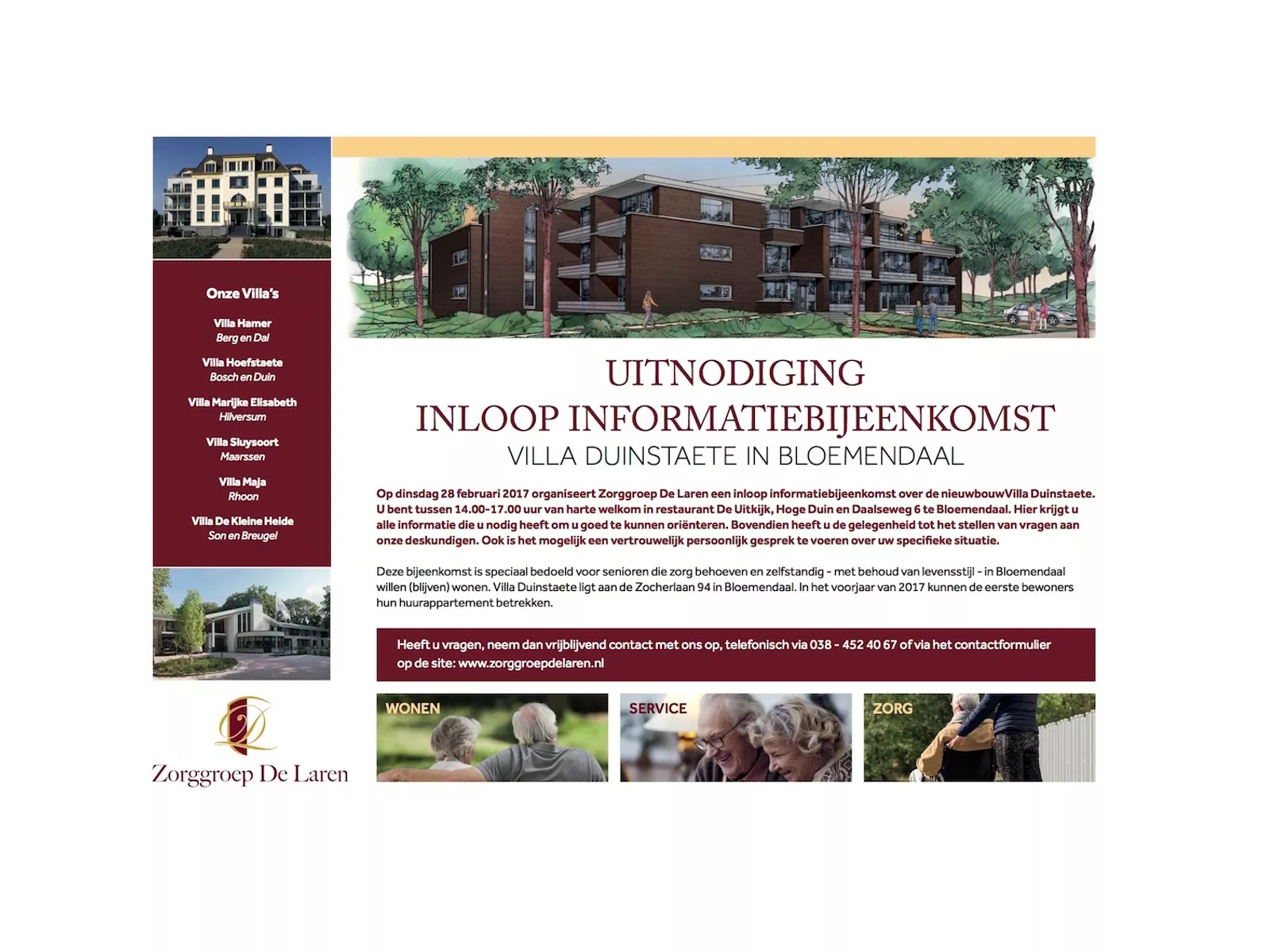 Zorgvilla & Zorghotel DuinstaeteUitnodiging inloop informatiebijeenkomst Villa Duinstaete