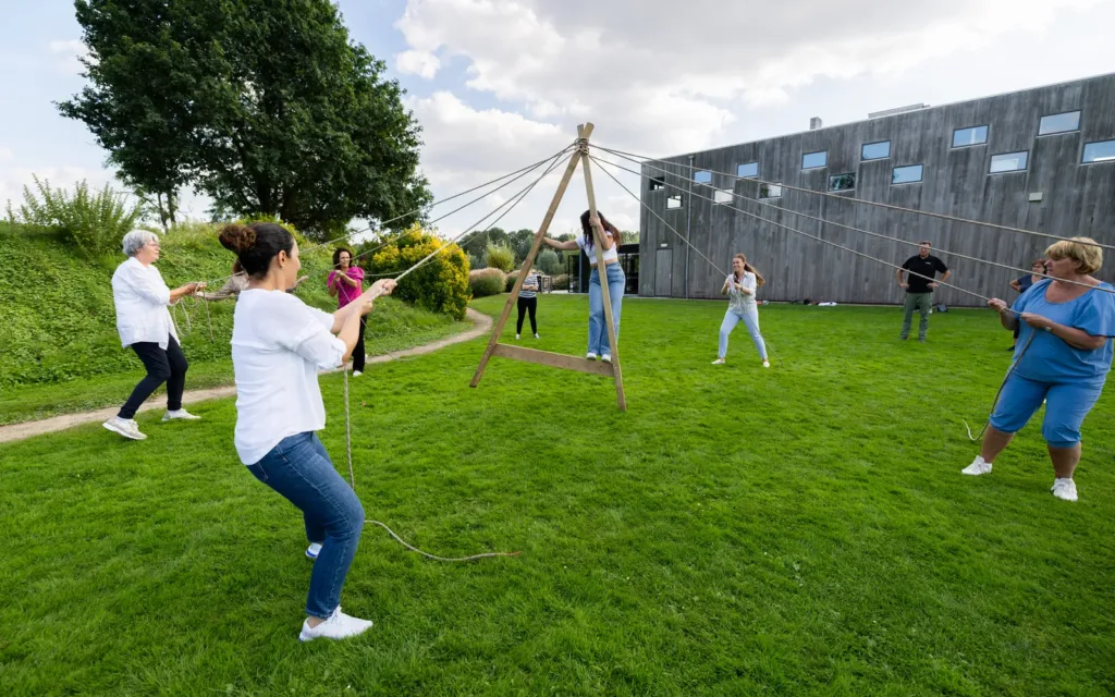 Na de speech introduceerde Rens Merkelbach, facilitator van het event, het programma van de middag en lichtte hij de verschillende sessies toe. Die varieerden van een quiz met feiten en fabels over Zorggroep De Laren tot sportieve teamchallenges en als hoogtepunt het oefenen van de Haka dans. Dit is de ceremoniële dans van de Maoristammen die nog steeds beoefend wordt door de Maori’s op het Noordereiland van Nieuw-Zeeland. Ook in Fiji en Samoa wordt de krachtige dans nog steeds uitgevoerd om goden op te roepen om hen kracht te geven of toeristen welkom te heten. Met het uitvoeren van de dans voelden we de kracht en verbinding toenemen. Het werkt!