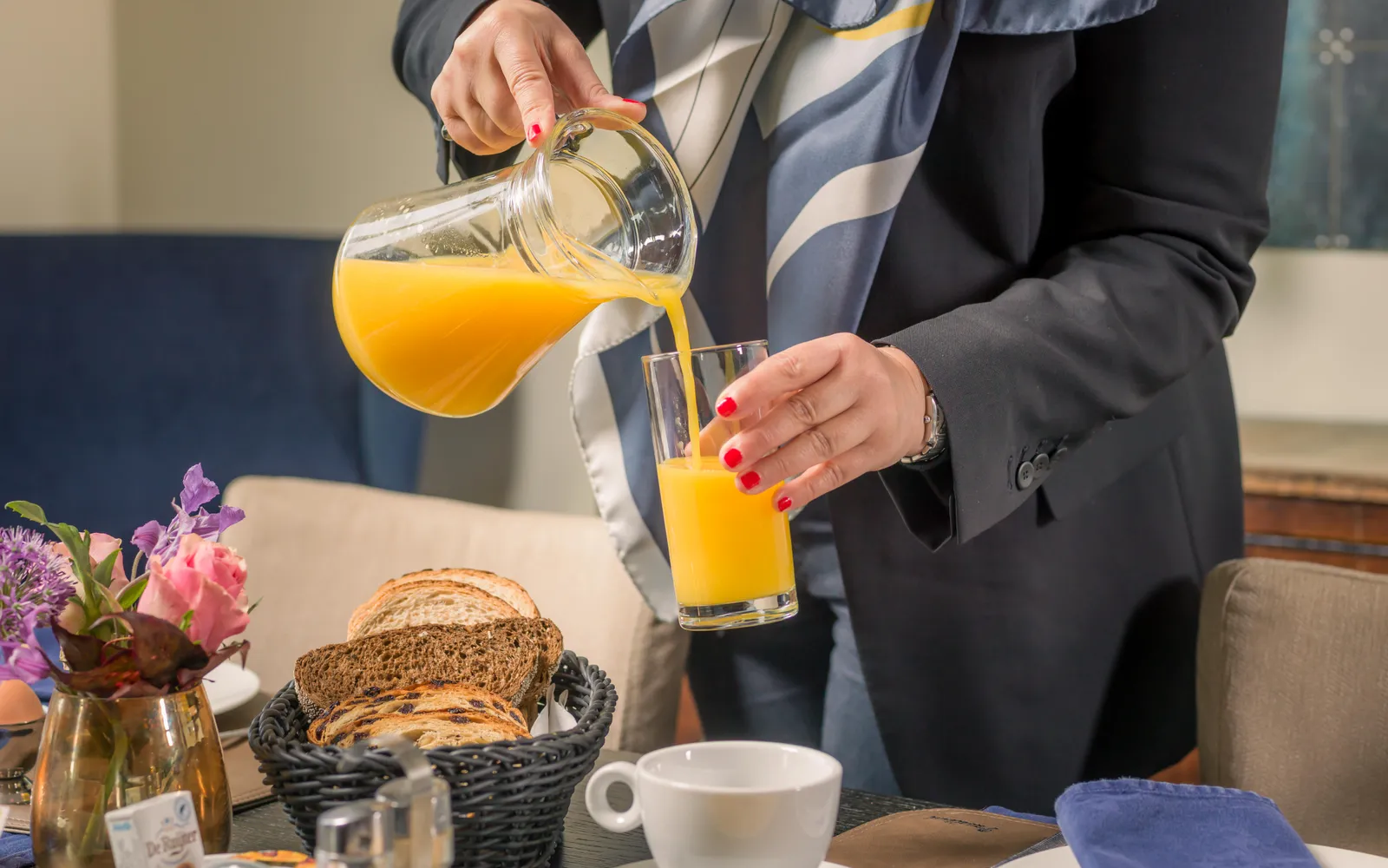 In de eetkamer serveren we elke ochtend een uitgebreid ontbijt, gevolgd door een smakelijke lunch en een versbereid driegangendiner in de avond. Onze chef-kok kookt dagelijks met verse ingrediënten, afgestemd op uw wensen en eventuele dieetvoorkeuren. Koffie, thee of een ander drankje staan de hele dag door voor u klaar. Eten is bij ons een moment van rust en samenzijn en een belangrijk onderdeel van de dag.
