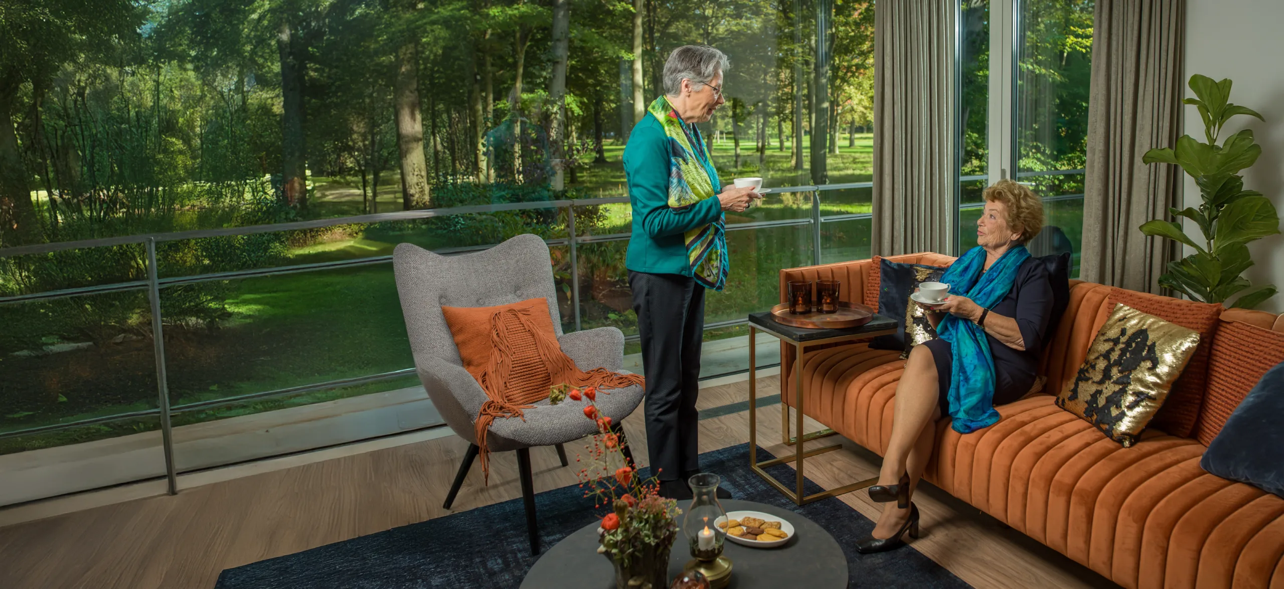 In onze villa’s woont u zelfstandig, maar nooit alleen. U heeft de rust en privacy van uw eigen appartement én de gezelligheid van samenzijn binnen handbereik. In de eetkamer of de woonkamer ontstaat ontmoeting vanzelf: tijdens de maaltijden, een kop koffie of een goed gesprek. Ook uw familie en vrienden zijn hier altijd welkom.